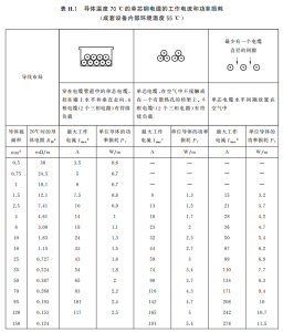 表 H.1和表 H.2提供了理想状态下,成套设备内单芯铜电缆的工作电流和功率损耗的指导性数 值。给出确定这些值的计算方法以用来计算其他工作环境下的数值。